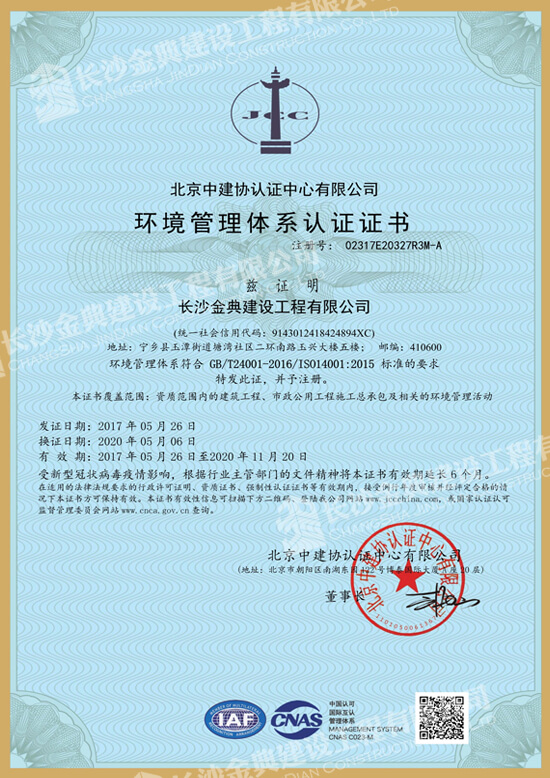 環(huán)境管理體系認證證書